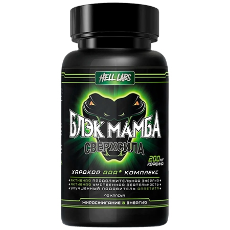 Black Mamba от Hell Labs — Российский аналог всемирно известного и очень популярного в России жиросжигателя от американской компании Innovative Laboratories. К сожалению со временем некоторые компоненты оригинального состава Black Mamba были запрещены в России. Однако Hell Labs создали полностью легальный аналог и попытались избавиться от минусов сохранив при этом плюсы оригинального состава.